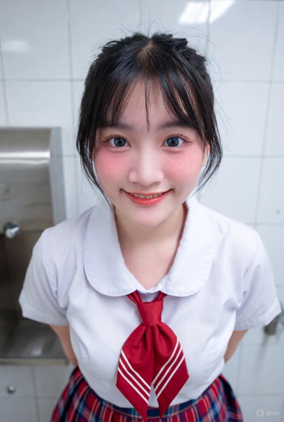 พลอยลุกขึ้นยืน ดึงกระโปรงนักเรียนขึ้นรอบเอว กางเกงในสีดำถูกดึงลงช้าๆ เผยหีชมพูเนียนไร้ขนที่เปียกแชะไปแล้ว “มาดูหีพี่สิ…สวยมั้ย?” กันคุกเข่าลง เลียร่องแคบๆทันที ลิ้นวนรอบติ่งเสียว พลอยกุมหัวเขาแน่น “โอ๊ยยย…น้องเก่งมาก…เลียลึกกว่านี้…พี่จะแตกแล้ว!”